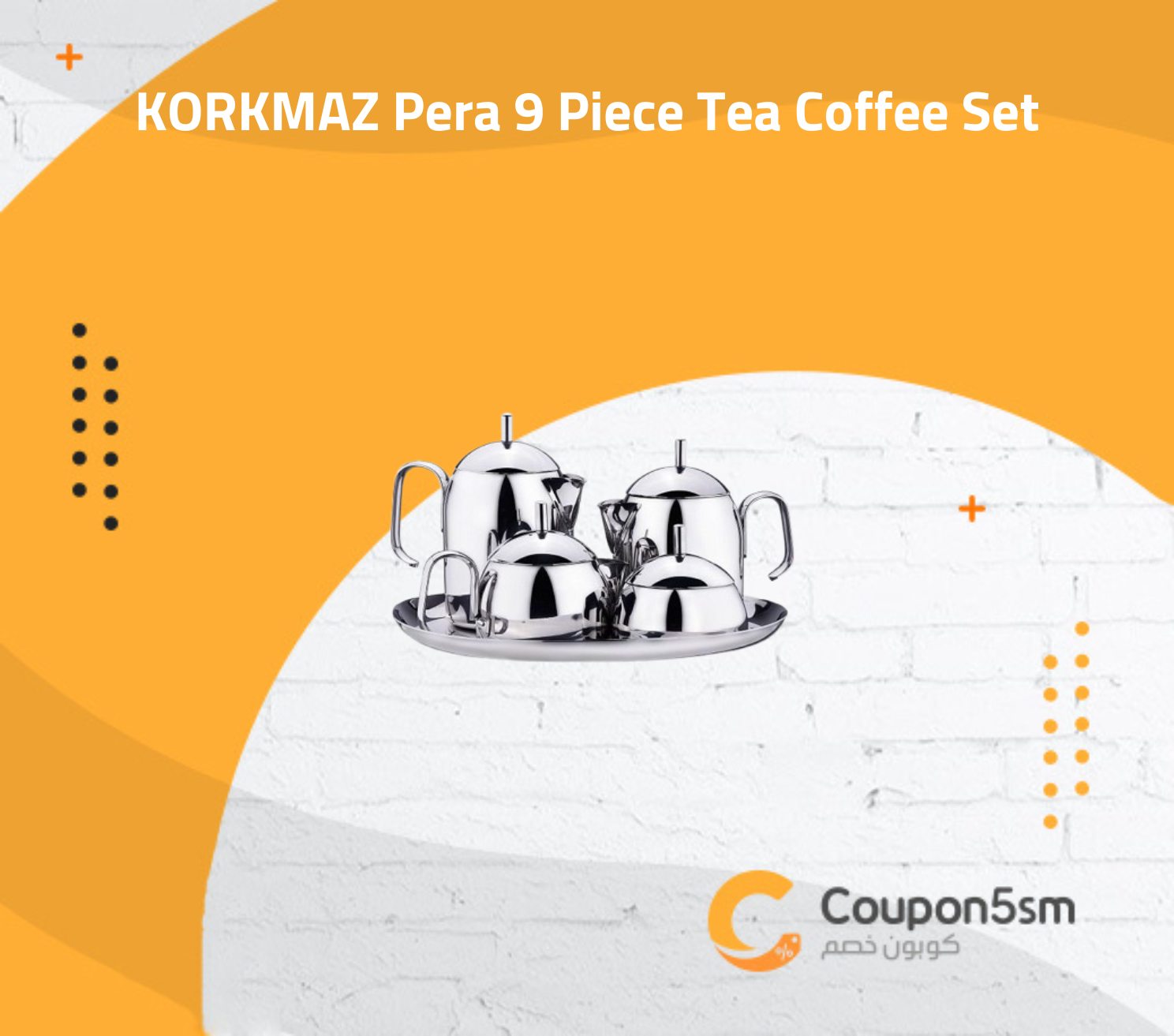 • The 9-piece Pera tea and coffee set comes with a tray from Korkmaz, and all products come with high-quality materials, as they are made of high-quality stainless steel.